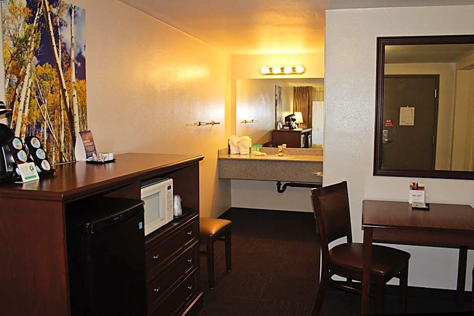 This room features satellite TV and a seating area. A microwave and a small fridge is also included.